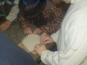 Pour démouler: Appuyer des deux côtés de la planchette. Puis prenez votre moulage posez le sur la vieille nappe. |